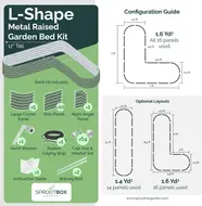 Our most standout garden kit in our whole collection. It's 17" tall and designed to outlast your wood raised bed while still looking amazing. The modular L-shape design will effortlessly round out a corner of your yard or garden patio. Made of the Top-Rated Specialized Steel for gardens and complimented by stainless steel hardware and commercial grade rubber edging. It's easy to understand why Canadians are trading in their wood gardens for a Sproutbox Garden.