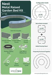 Our most standout garden kit in our whole collection. It's 17" tall with an 11' wide internal opening and 16' in diameter. Bring your patio furniture, happy hour drinks, evening fires or add more gardens to make this space your own! Designed to outlast your wood raised bed while still looking amazing. Made of the Top-Rated Specialized Steel for gardens and complimented by stainless steel hardware and commercial grade rubber edging. It's easy to understand why Canadians are trading in their wood gardens for a Sproutbox Garden.